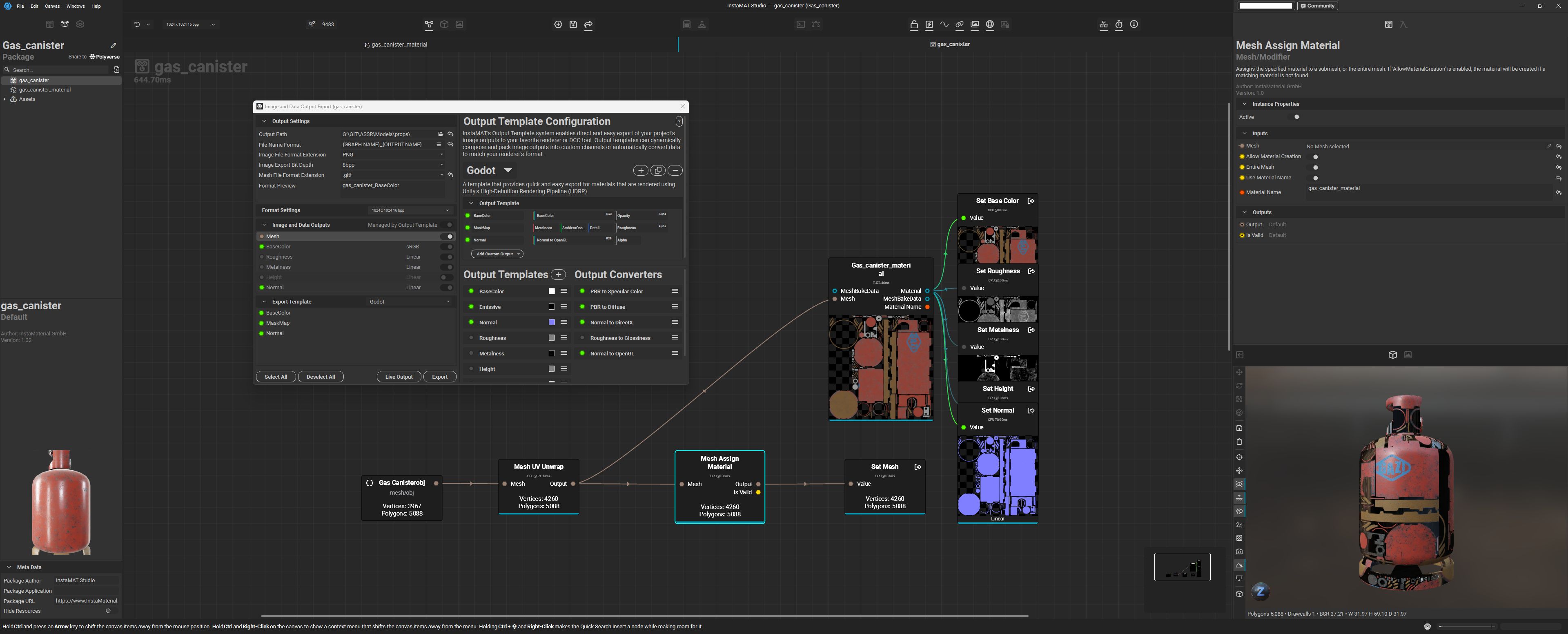 That way, if you change the input mesh, InstaMAT will automatically re-bake new mesh maps, and the layering project is able to procedurally adapt to the incoming geometry and texture it.