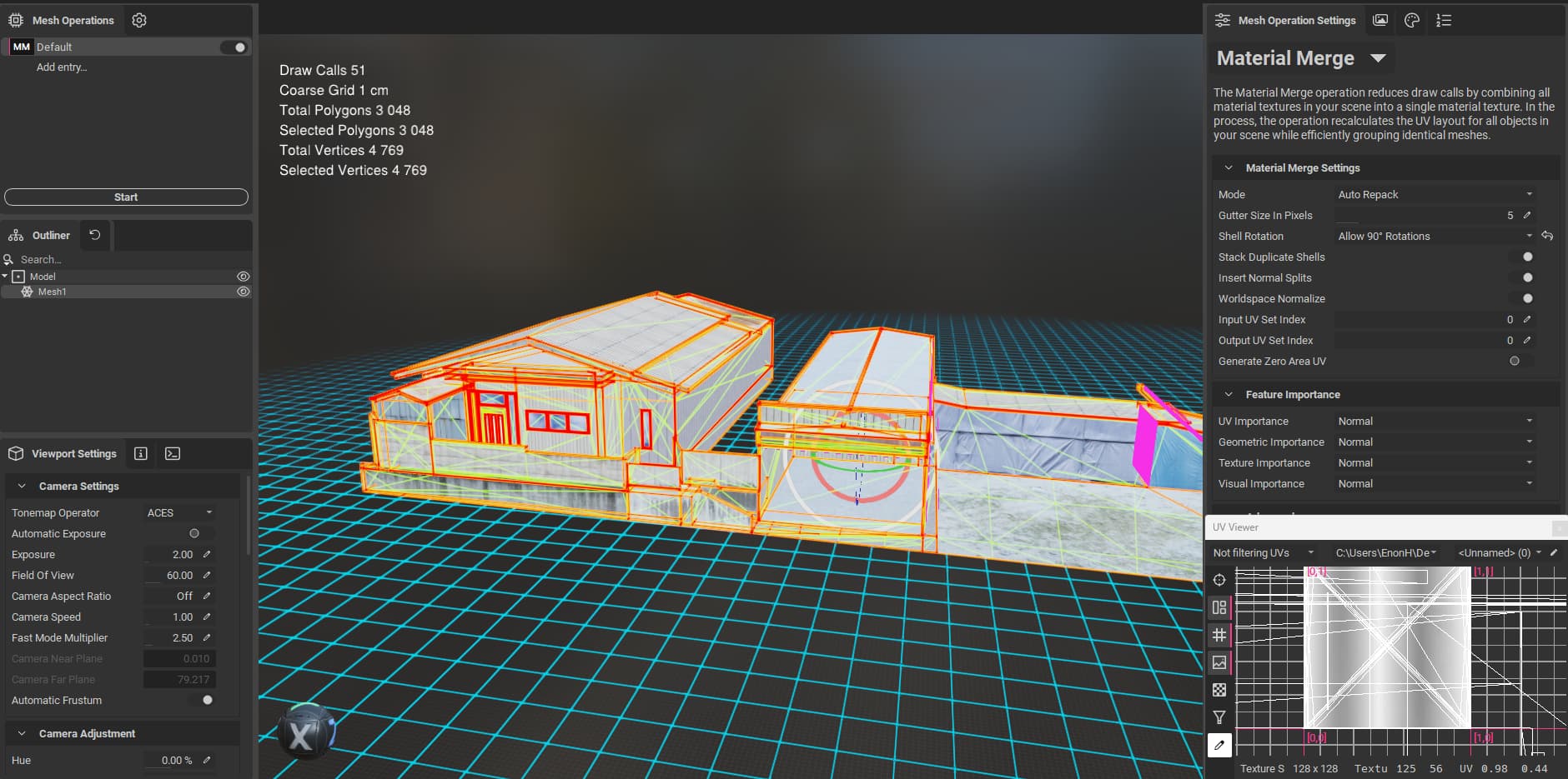 Hello , the config is default settings , here its the config and uv view before make the drawcall recuder