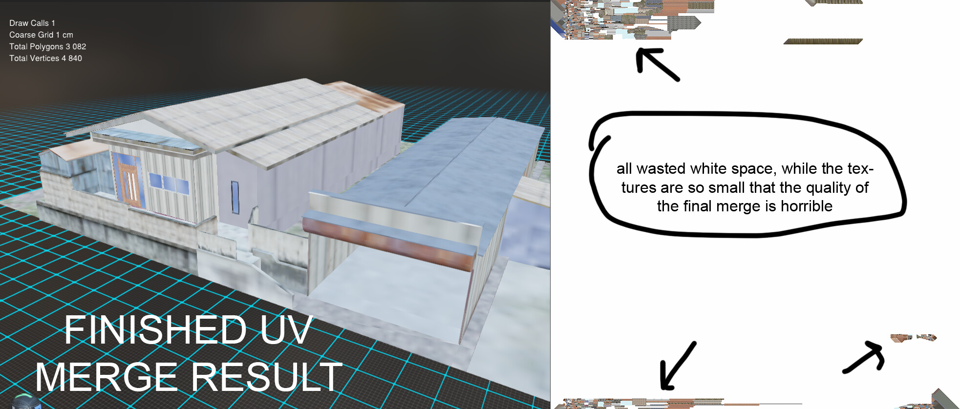 Hi, I’m just starting with the install, interested in the texture merging. When I follow the YouTube video tutorial and the processing is finished, I see a large amount of wasted white space while the actual textures are too small, making it look totally low-resolution. Any idea why this happens? Thanks.