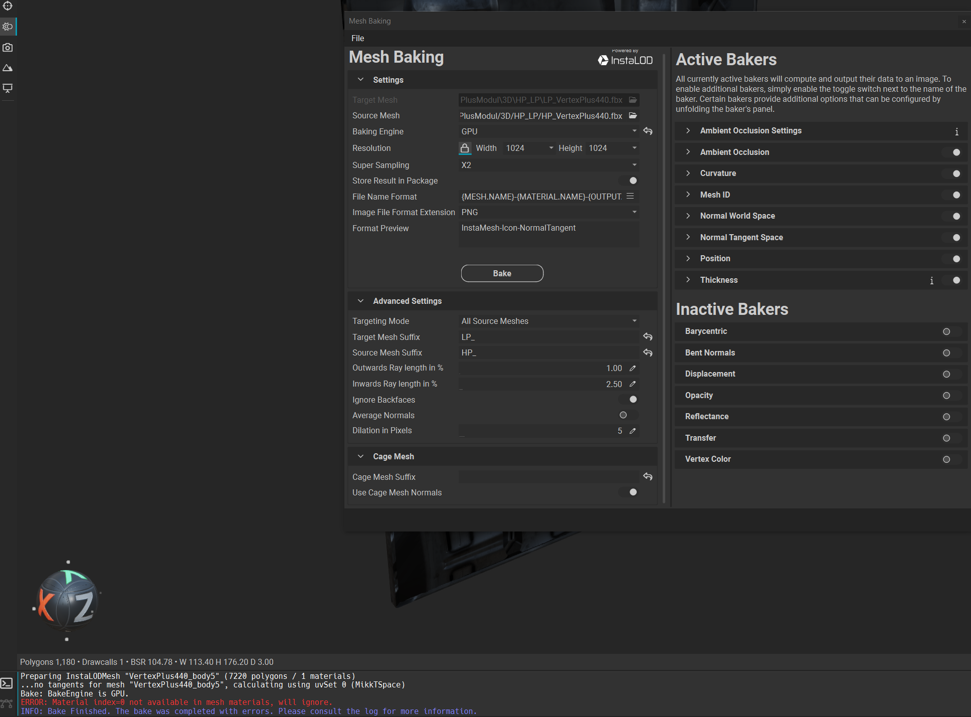 ERROR: Material index=0 not available in mesh materials, will ignore.