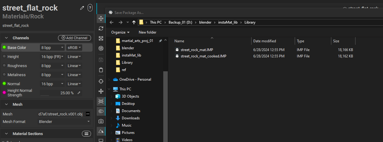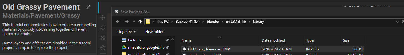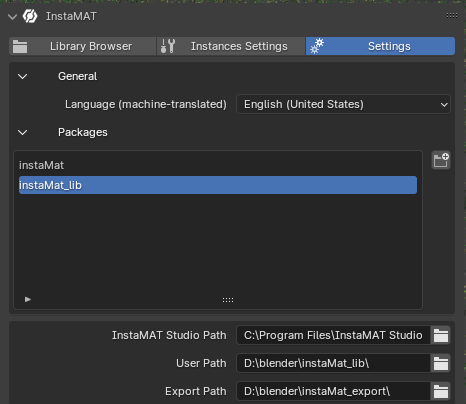 Adding the material to a “Library” sub directory like instaMat_lib/Library should make it appear in InstaMAT for Blender. After adjusting the folder structure and adding materials, a restart of Blender should refresh the material library in the integration.