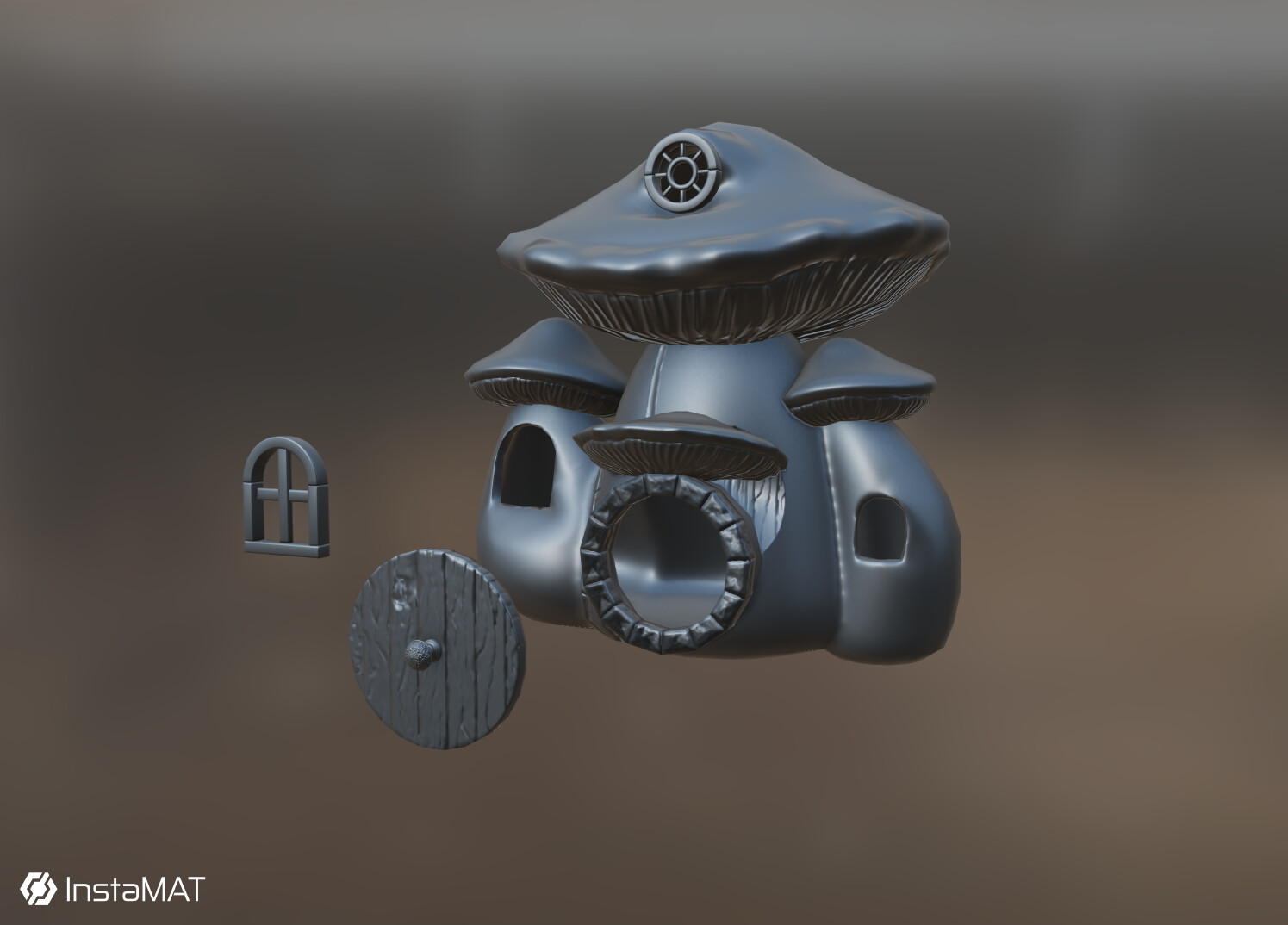 Due to cage baking not functioning at present, I ended up setting the “Outwards Ray Length” to 2.5% to accommodate the inward sloping walls, and protected the fine details of the window frames from bake errors by fully exploding the mesh. I was very pleased with the results and with the abilities of InstaMAT.