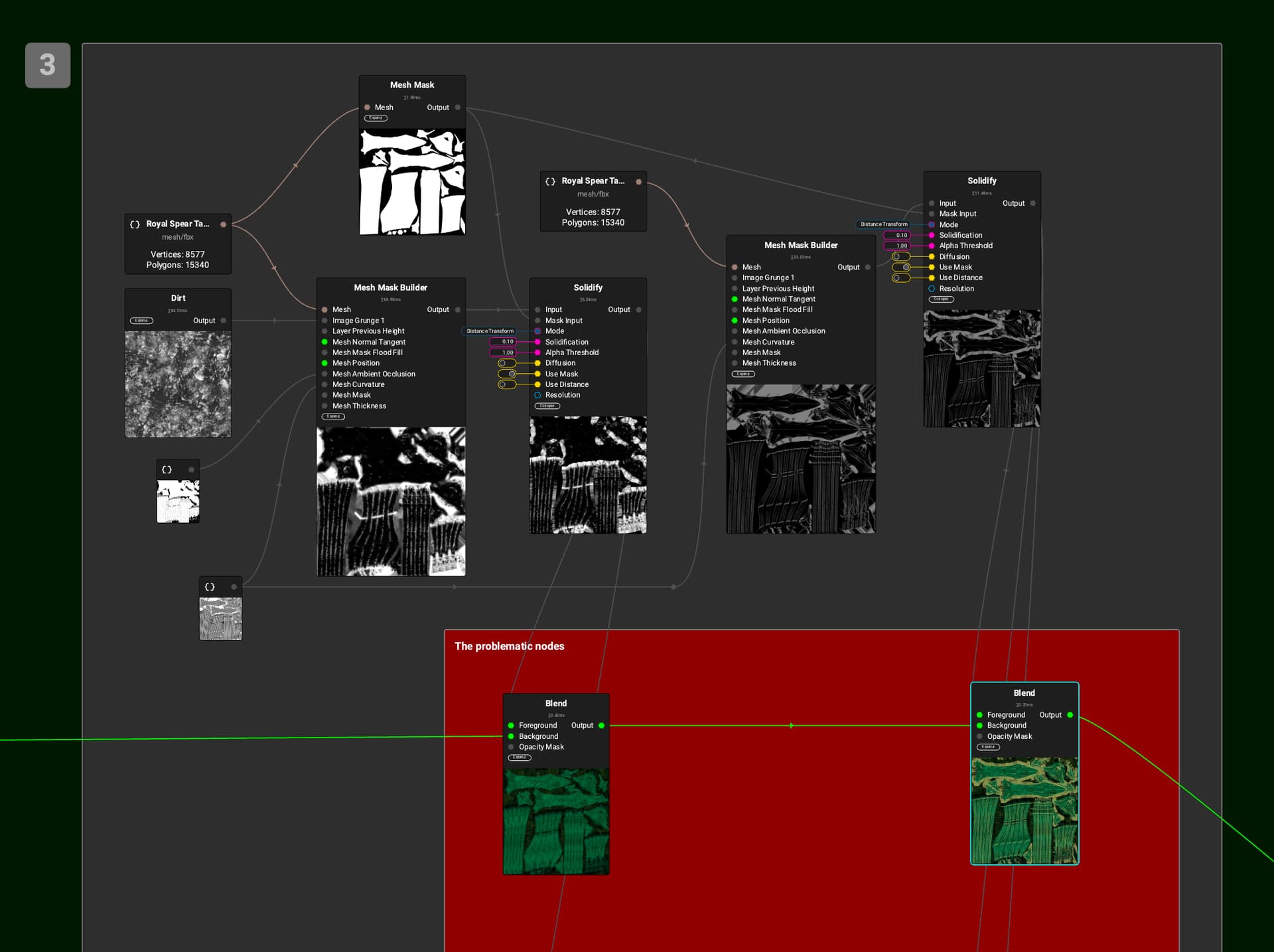 i noticed it in another asset too, to solve it i sow it was needed to bring up the solidify parameter ( in the mesh project ) at .01, because it’s set at 0 at the start. i found that in a couple of cases, where i had to bring it up or where i had to add it separately because it there was not in all the nodes where it was needed.