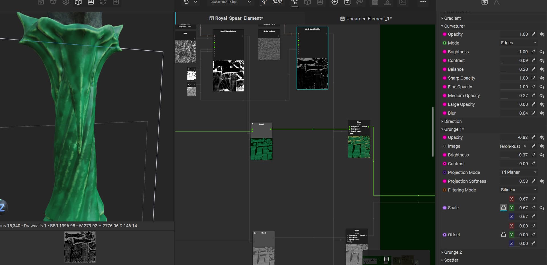 i also sow these nodes, they should just apply a triplanar to the grunge, but it does not seam to be working well