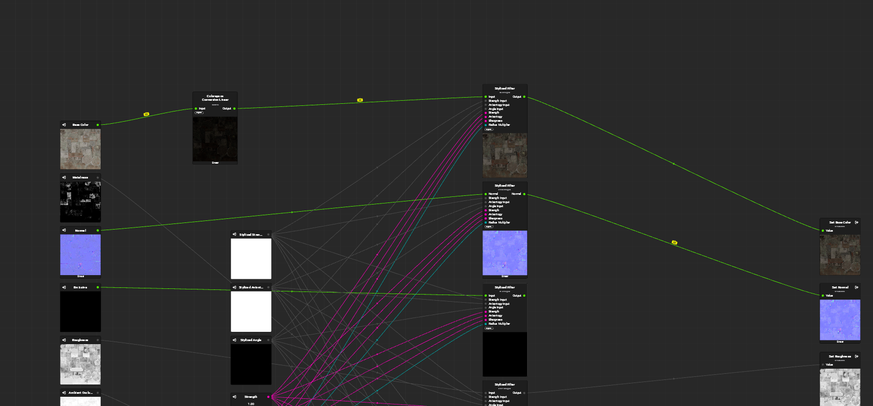 All the input nodes are set to the correct color space, as far as I can tell. I’m able to fix the issue by adding a “Colorspace Conversion Linear” node to the graph for the base color input, and changing that node’s conversion setting to “sRGB to Linear”. But then the material looks wrong in InstaMAT. Is this a bug with the Blender plugin?