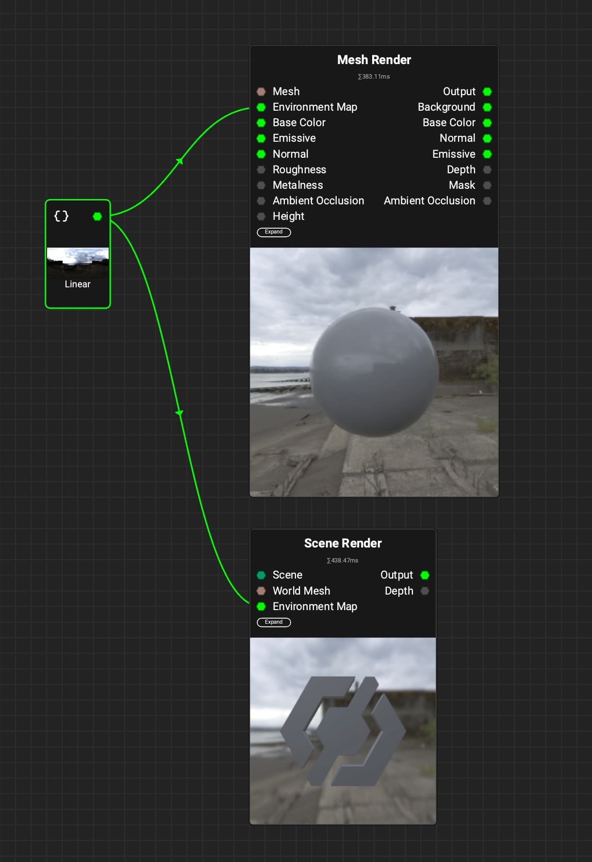 You could use either of these nodes to visualize your asset before using it in Unity.