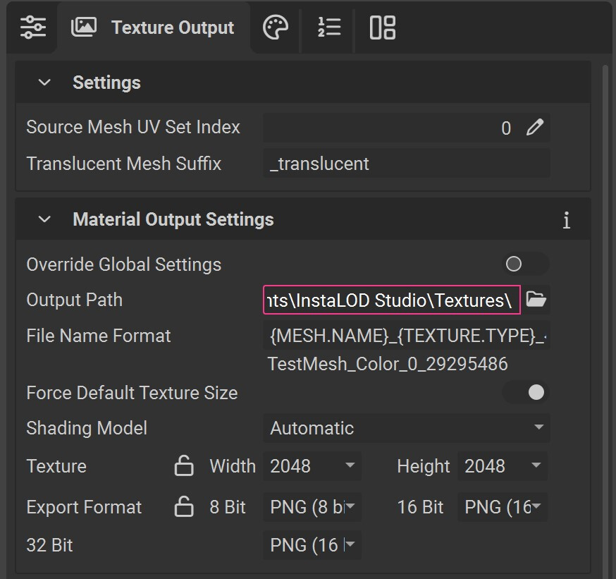 I have a profile I created where I processing a high-poly mesh down to game-engine quality. Since the mesh has multiple submeshes (and materials), I have 3 (Optimize) operations that preserve the existing materials but simplify the geometry for LOD0 - LOD3. But for the 4th LOD, I am using (Remesh) to bake a new material at 512x512 resolution that merges all the materials into a single set of textures. I don’t want to embed the materials from the Optimize operations because they are trim sheets used by multiple models (and I don’t want to duplicate these in the FBXs I’m exporting). However, I do want to output the 512x texture that gets baked in the Remesh step.