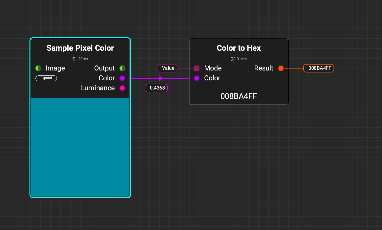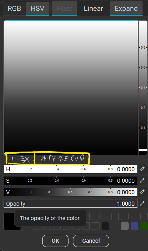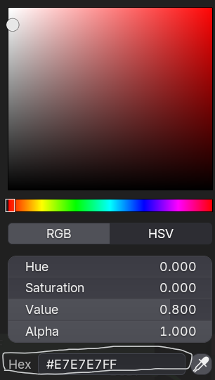 an hex value for the color under the color square