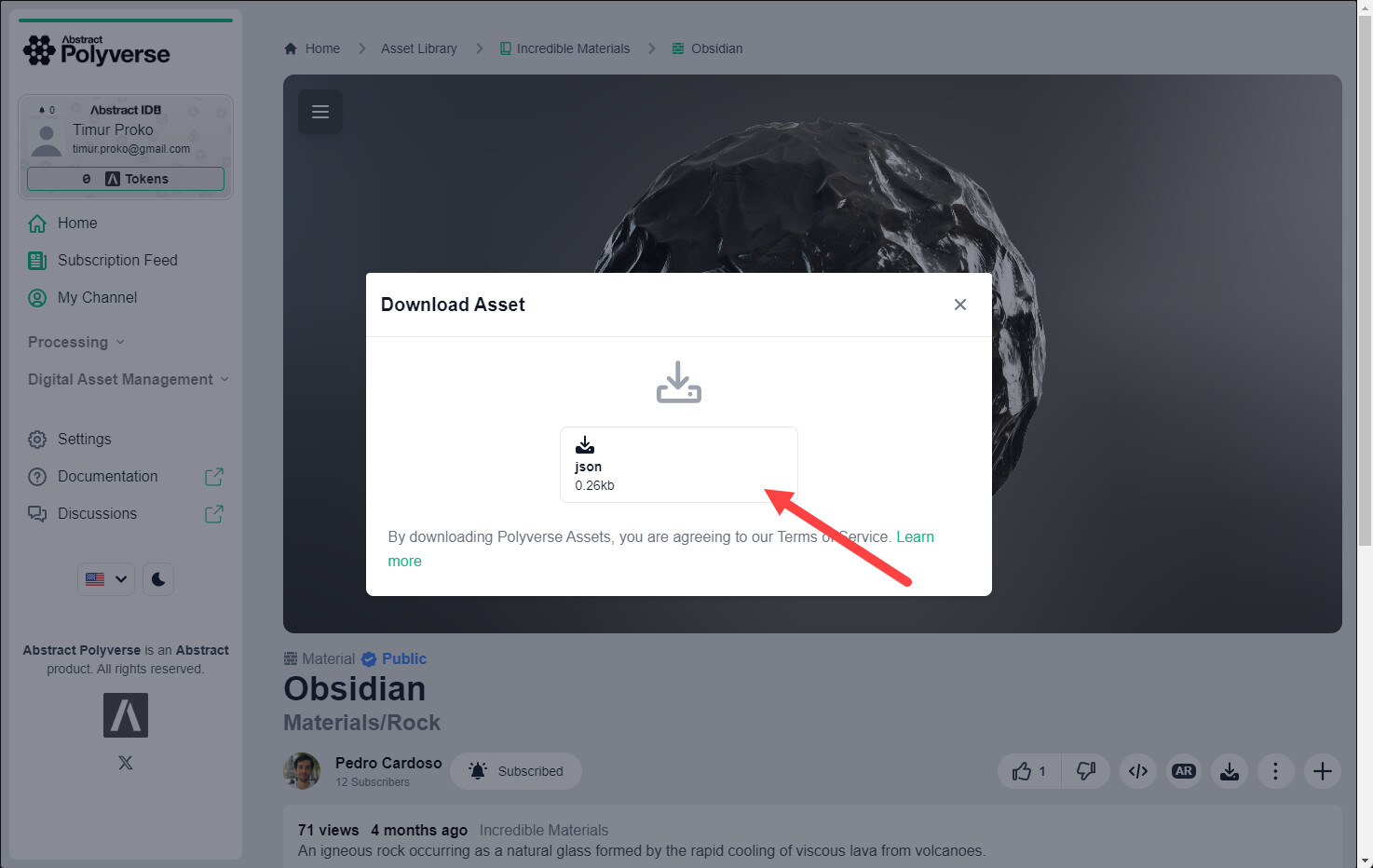 Can I download and utilize the assets that are publicly available on Polyverse with InstaMAT? When I try to download a material, my experience is as follows: I can download a JSON file, but it doesn’t seem to store any graph data. I’m curious about the purpose of downloading these JSON files if they don’t contain graph data.