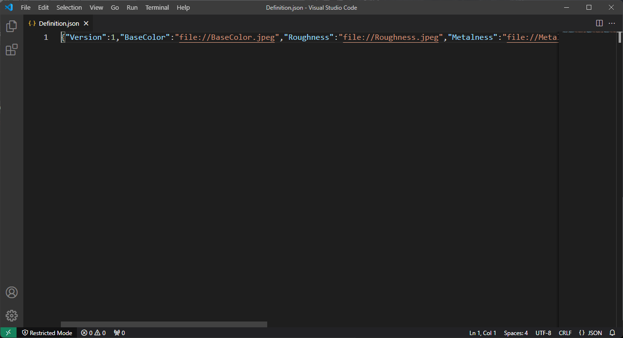 Regarding the JSON files, materials stored in Polyverse are stored as definitions. This makes it possible to use them in many DCCs and game engines where configurations vary per application.