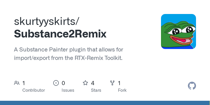 I’m currently porting my Substance2Remix plugin to InstaMAT (InstaMAT2Remix). The goal is to allow a seamless “Pull” from NVIDIA’s RTX Remix directly into InstaMAT for texturing.