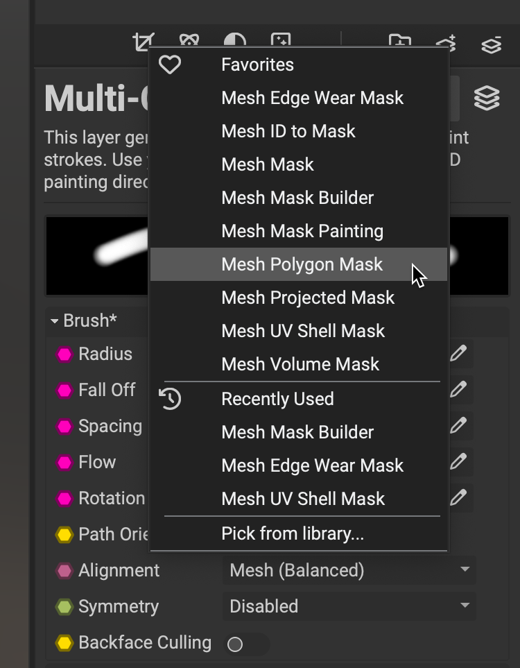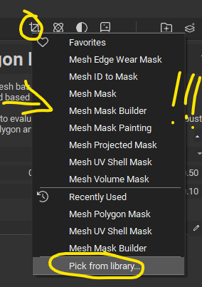 @garry3d You could add the Mesh Polygon Mask as a favorite. This will make it appear under the Favorites section in the pulldown menu.