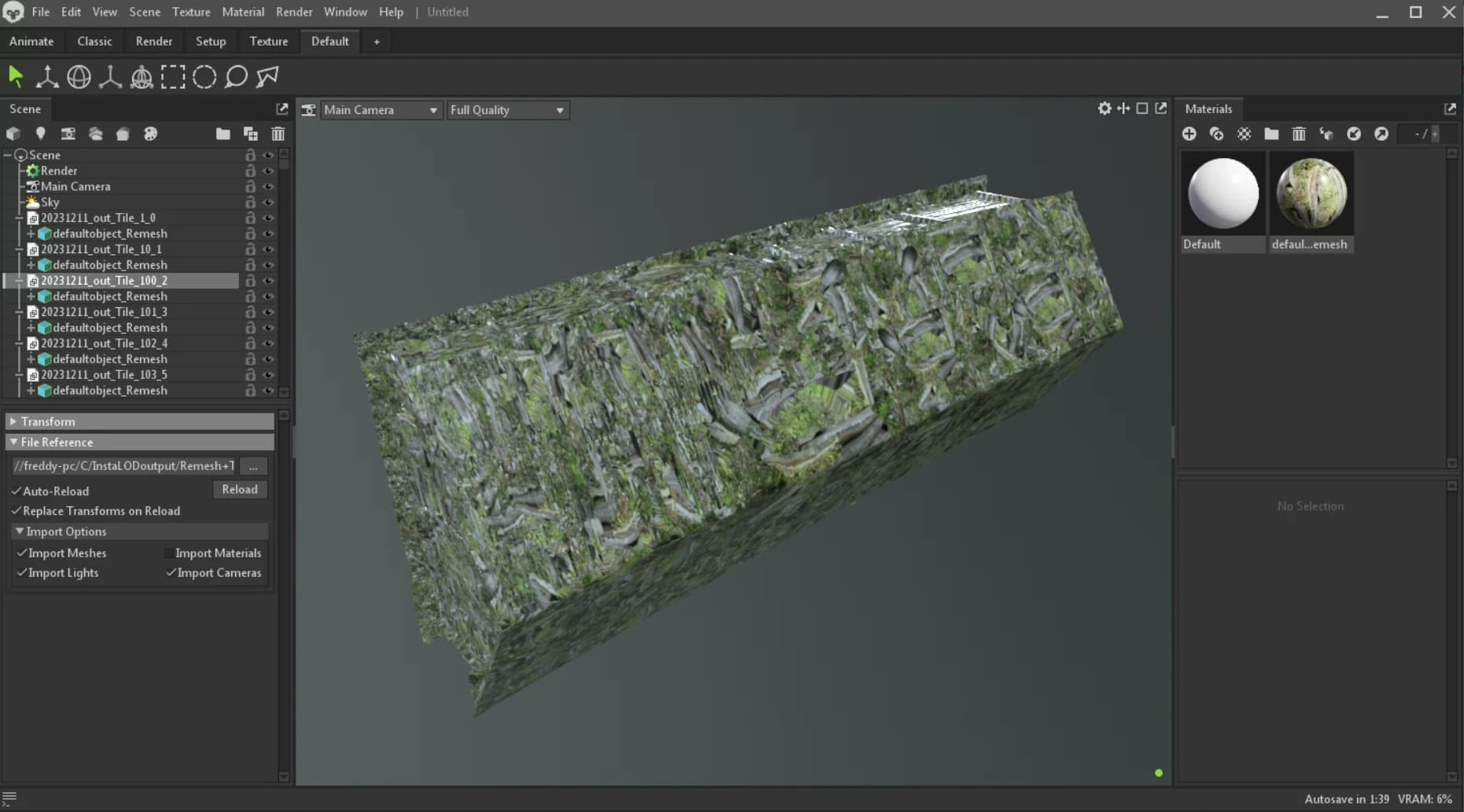 So? after REmesh operation I have 1000+ model files with same material name in each. It can’t be imported easy to UE or some other software