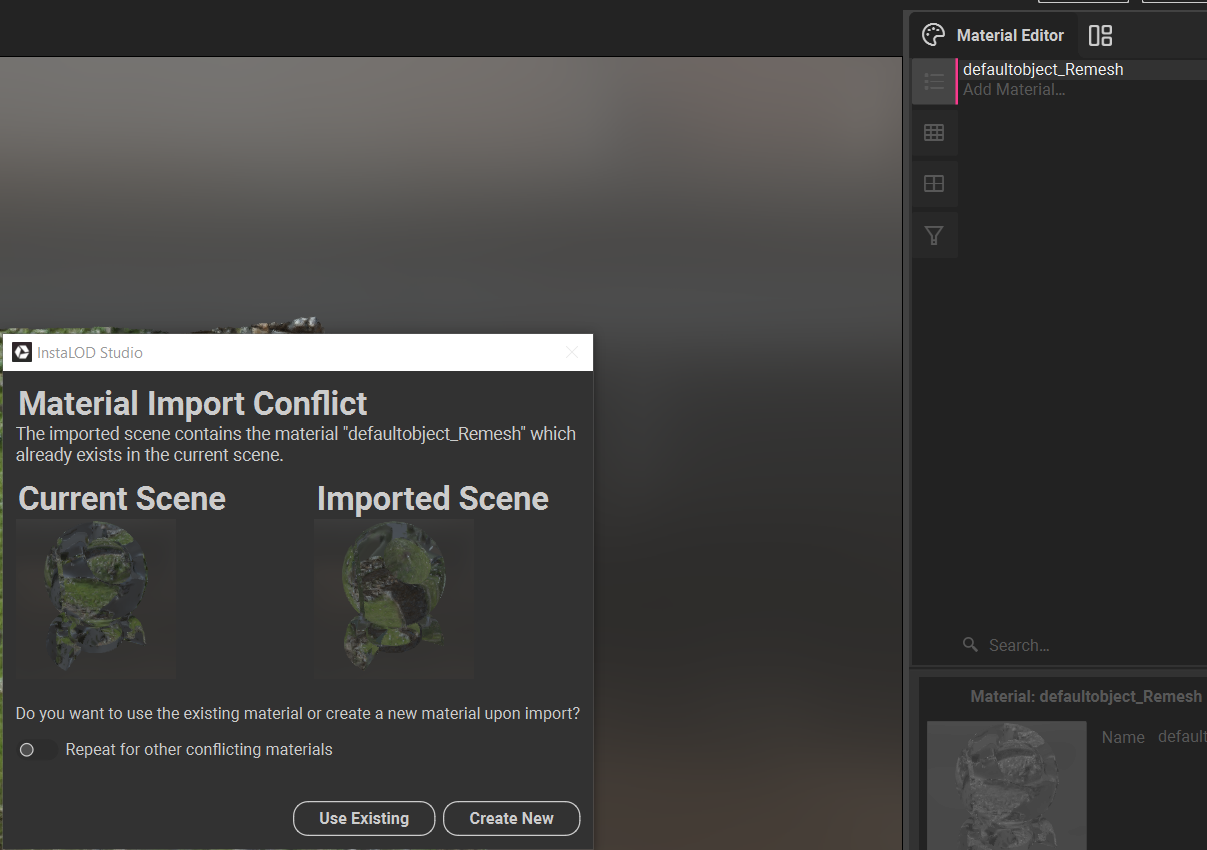 Nevertheless, InstaLOD Studio should automatically fix conflicting material names upon import.