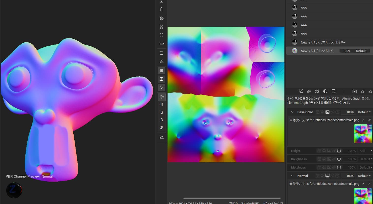 - In the multi-channel layer, reference the Bent Normal for both BaseColor and Normal.