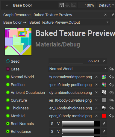 In the GIF you can see that the node doesn’t have a seed (it doesn’t need it, right, it’s not procedural) and it also does not show the inputs for the bake textures - yet - it magically works.