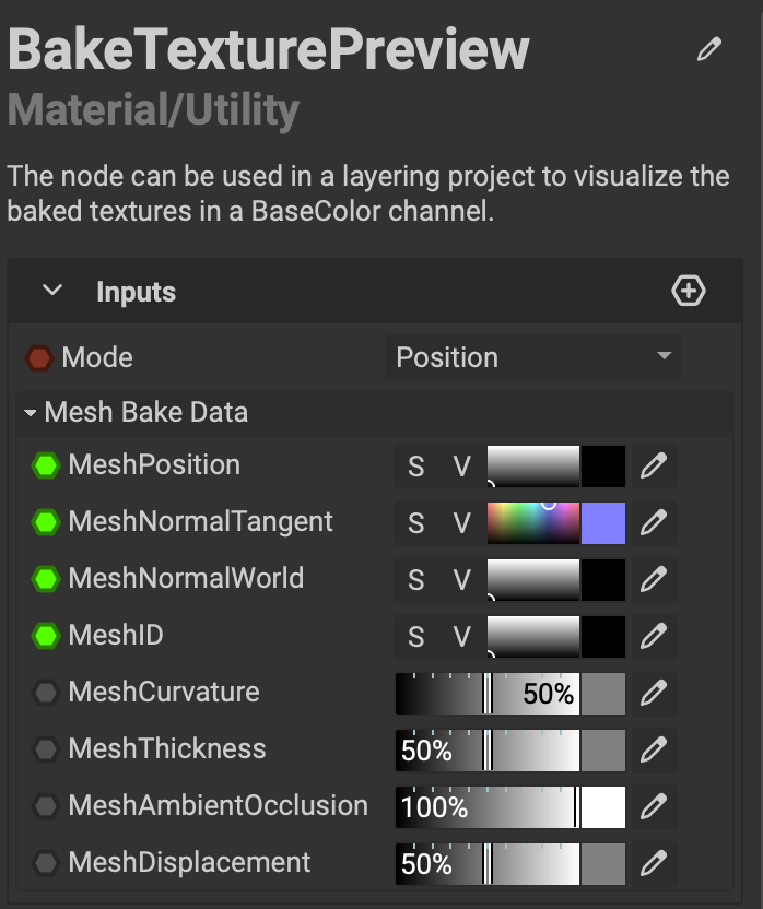 Also, ideally, you’d assign the “MeshBakeData” category to all those inputs, that’s our convention. Because if you do that, you’ll get…