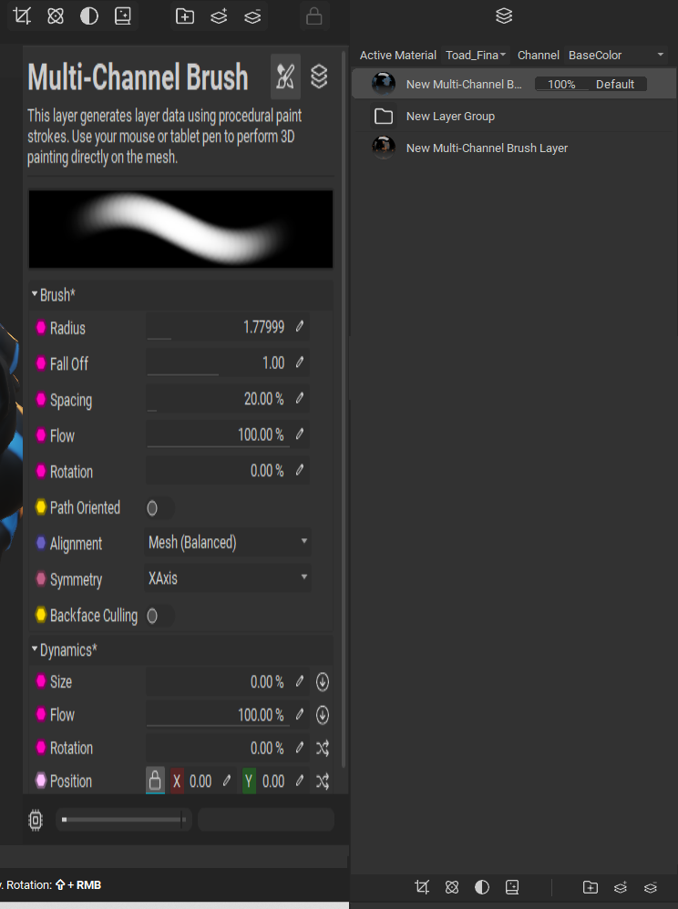A button could split the panel allowing it to be docked next to the layer stack. Optionally the multi channel brush panel could be tied to a hotkey for floating next to the mouse.