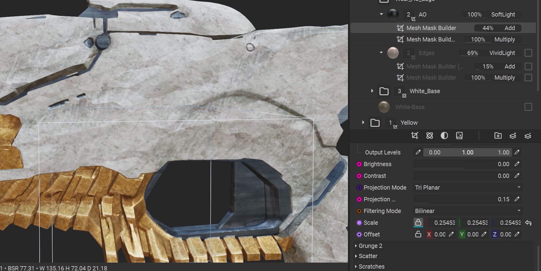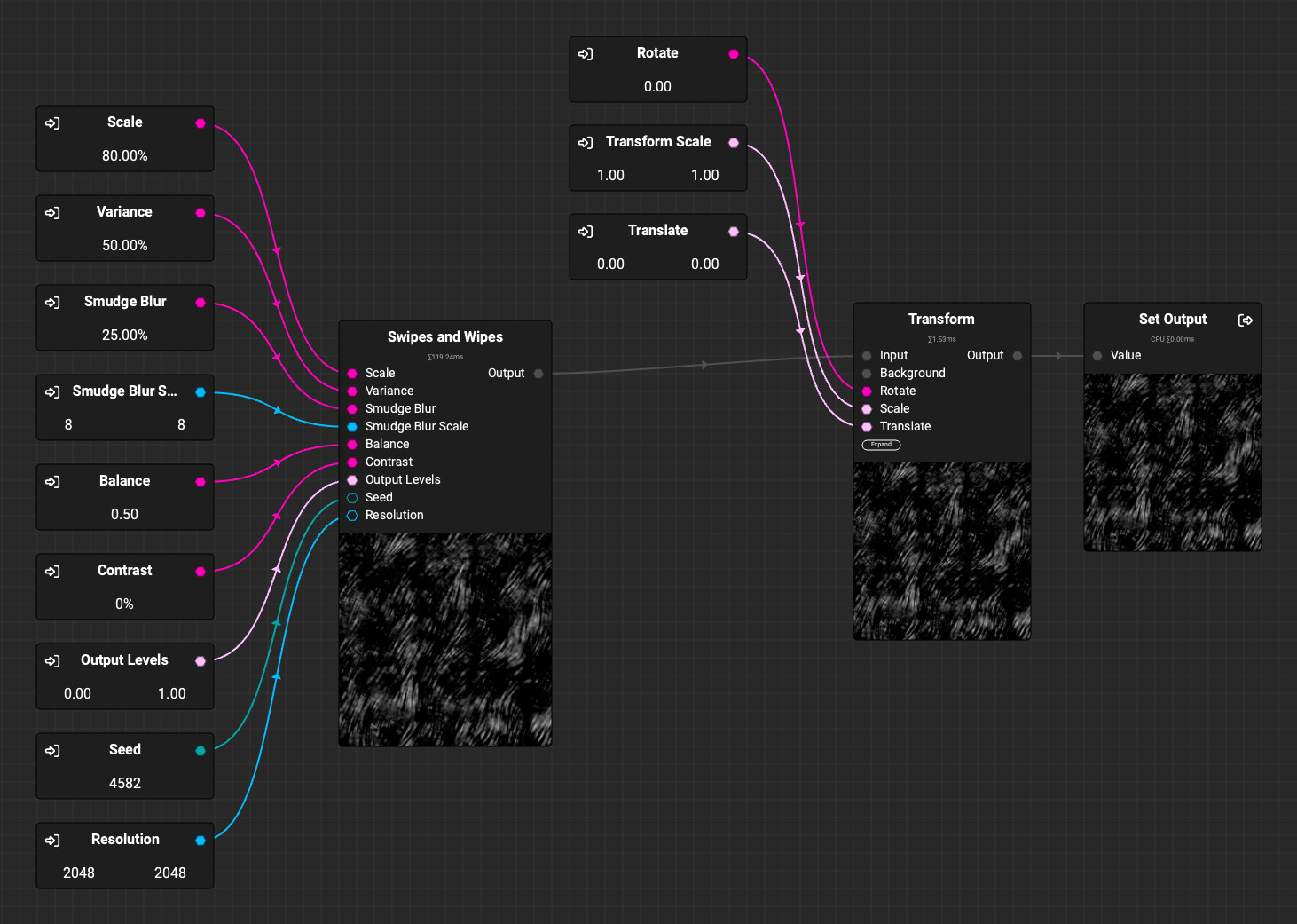 You could also create your own node that exposes a Transform node’s rotation parameter and use it as a grunge for the Mesh Mask Builder. Here’s an example:
