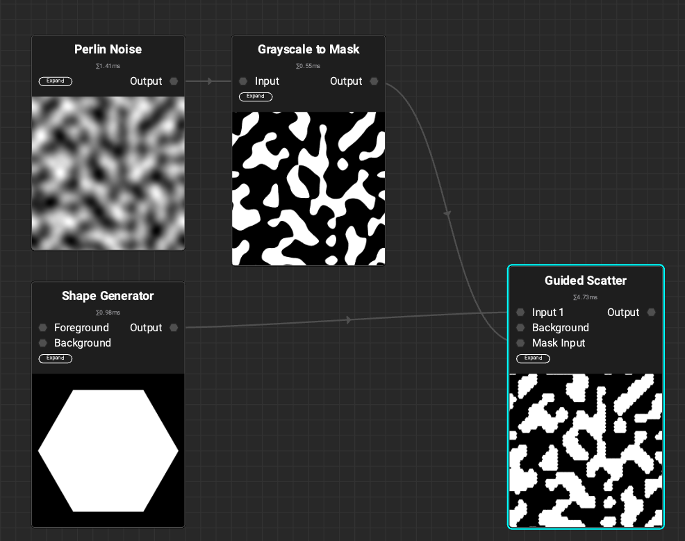 Currently the masking on the Tile Scatter node is a bit limited. Having a the ability to use a custom image for masking would be really helpful.