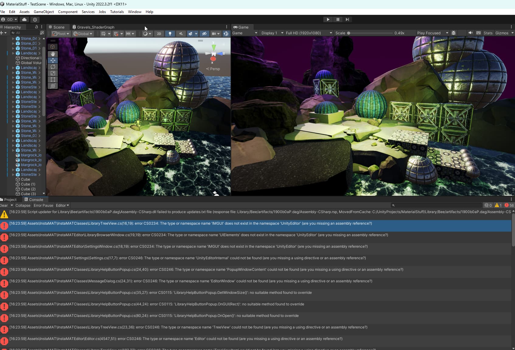 This appears to be because the Instamat tools are not in a folder named “Editor”, but instead “InstaMatEditor” so unity tries to include it in the player build (Unity loves it’s special magic folder names).