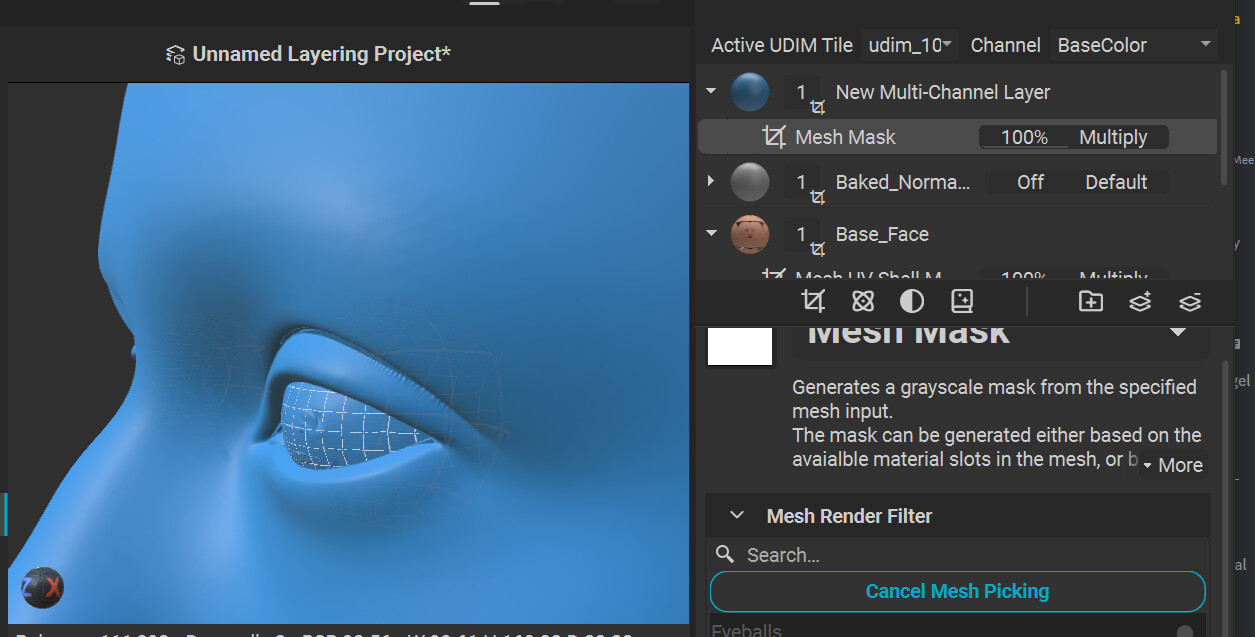 I can neither mask correctly using UV shell masking (which is a great addition otherwise) nor Mesh masking (which I think actually works in material layering, but definitely doesn´t work in UDIM layering projects).